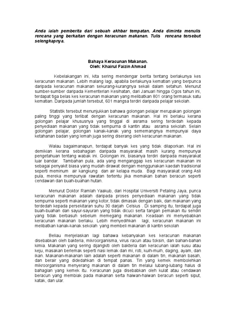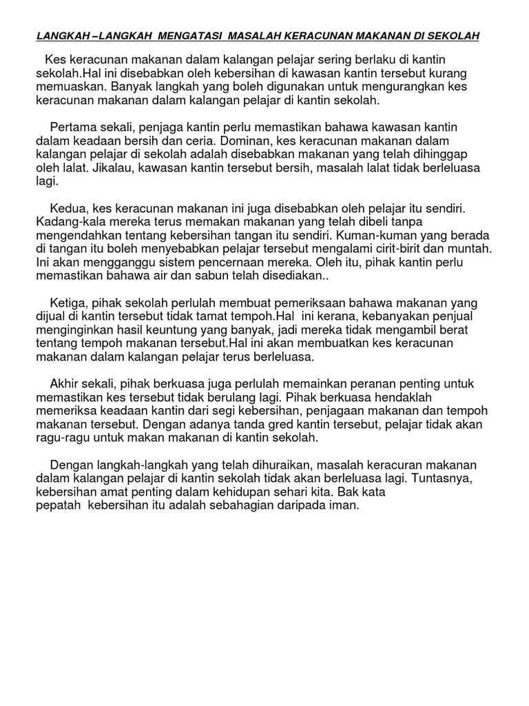 Hanya periksa semua118 PDFs dari pengarang g-07403399. KES KERACUNAN MAKANAN DI SEKOLAH. Contoh Karangan 2.