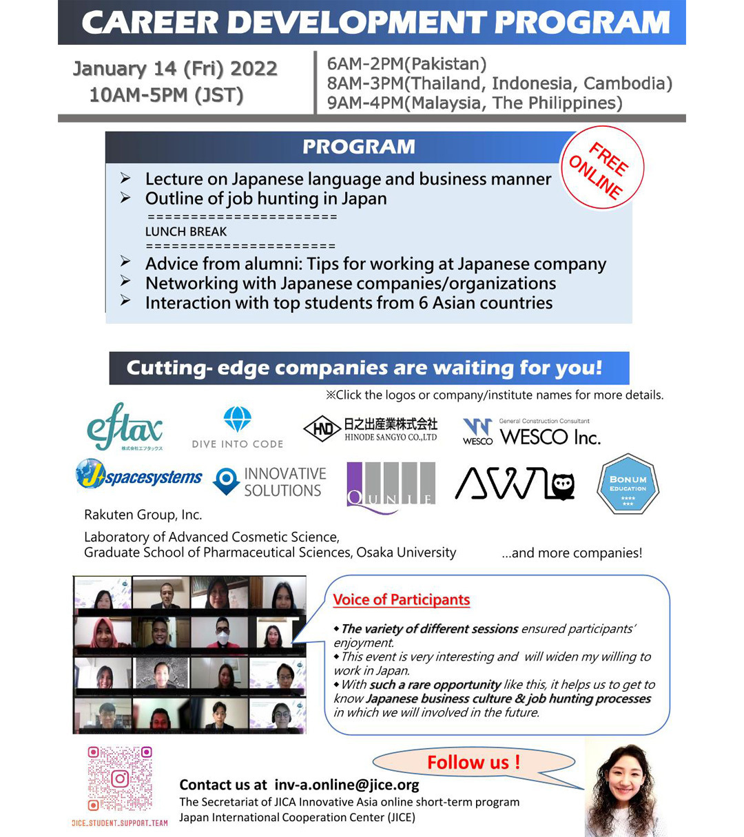 Jica Media On Twitter Career Development Program Is Coming Soon On Jan 14 Fri Join Us Online Lecture On Japanese Language Amp Business Culture Networking With Japanese Companies Workshop For Career Design Apply Here